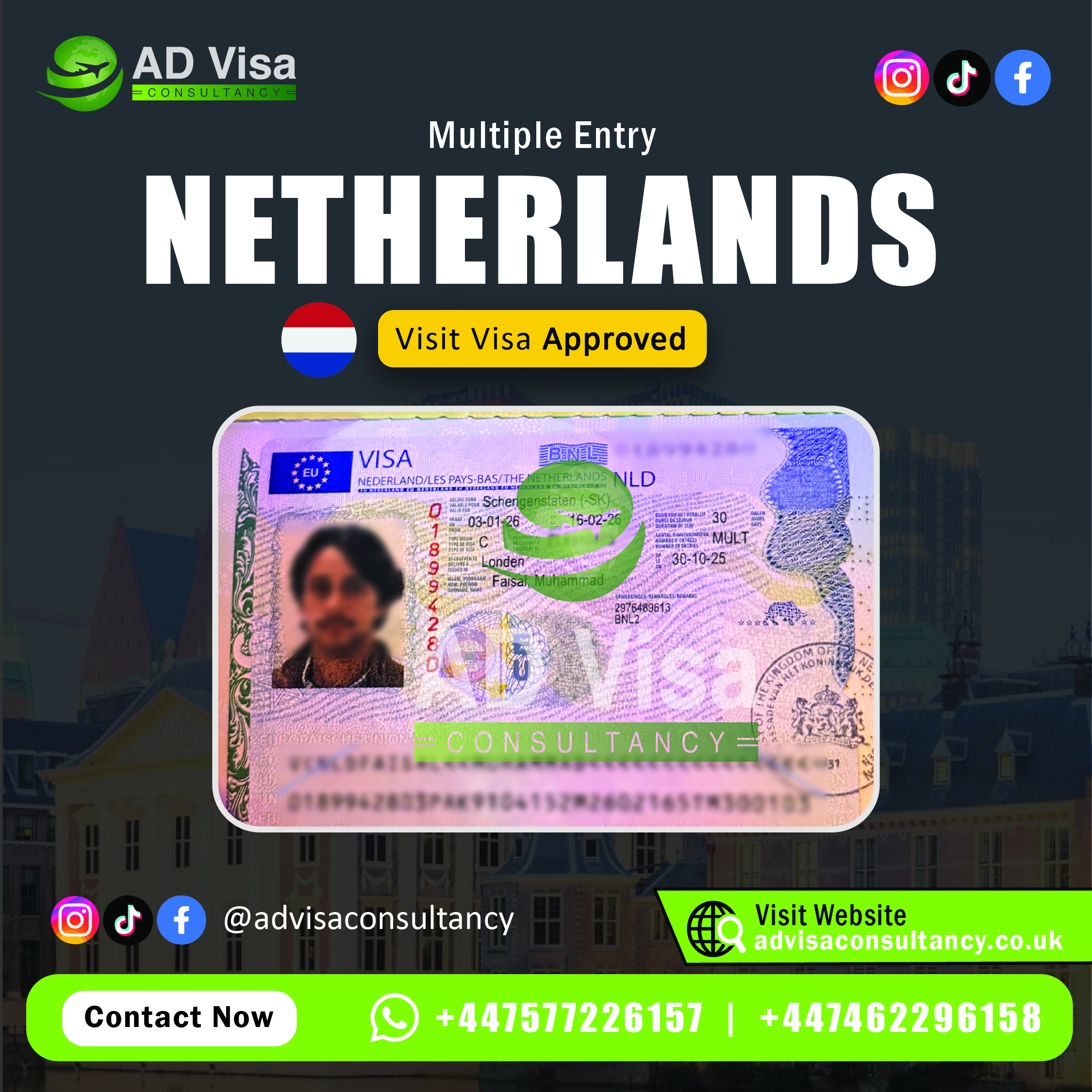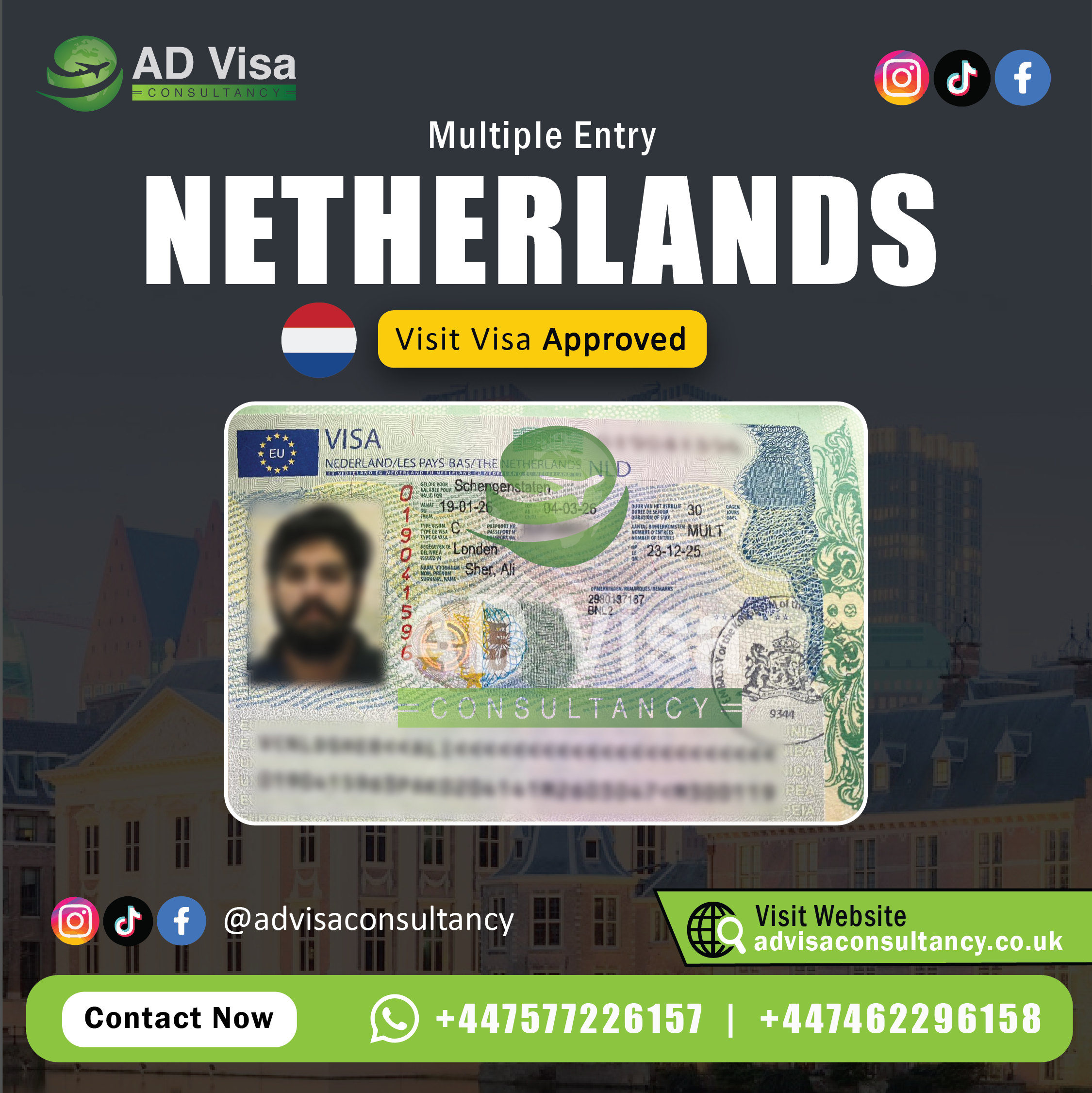We assist with visit visa applications for Canada, Australia, the UK, the USA, and several European countries, depending on your requirements.